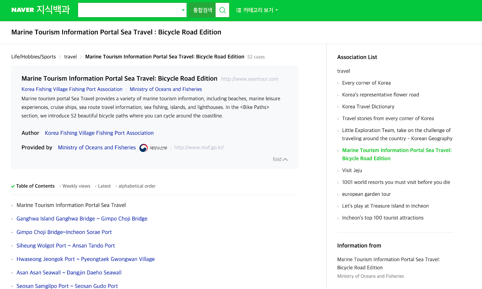 | Marine Tourism Information Portal Sea Travel | 해양관광정보포털 바다여행 |
